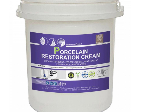 Porcelain rstoration cream is a specific cream for the restoration of defects on the surfaces of unglazed polished porcelain stoneware and polished glazed porcelain stoneware. The product is characterized by its ability to perform a very fine superficial micro-abrasion, which allows the restoration of defects such as: